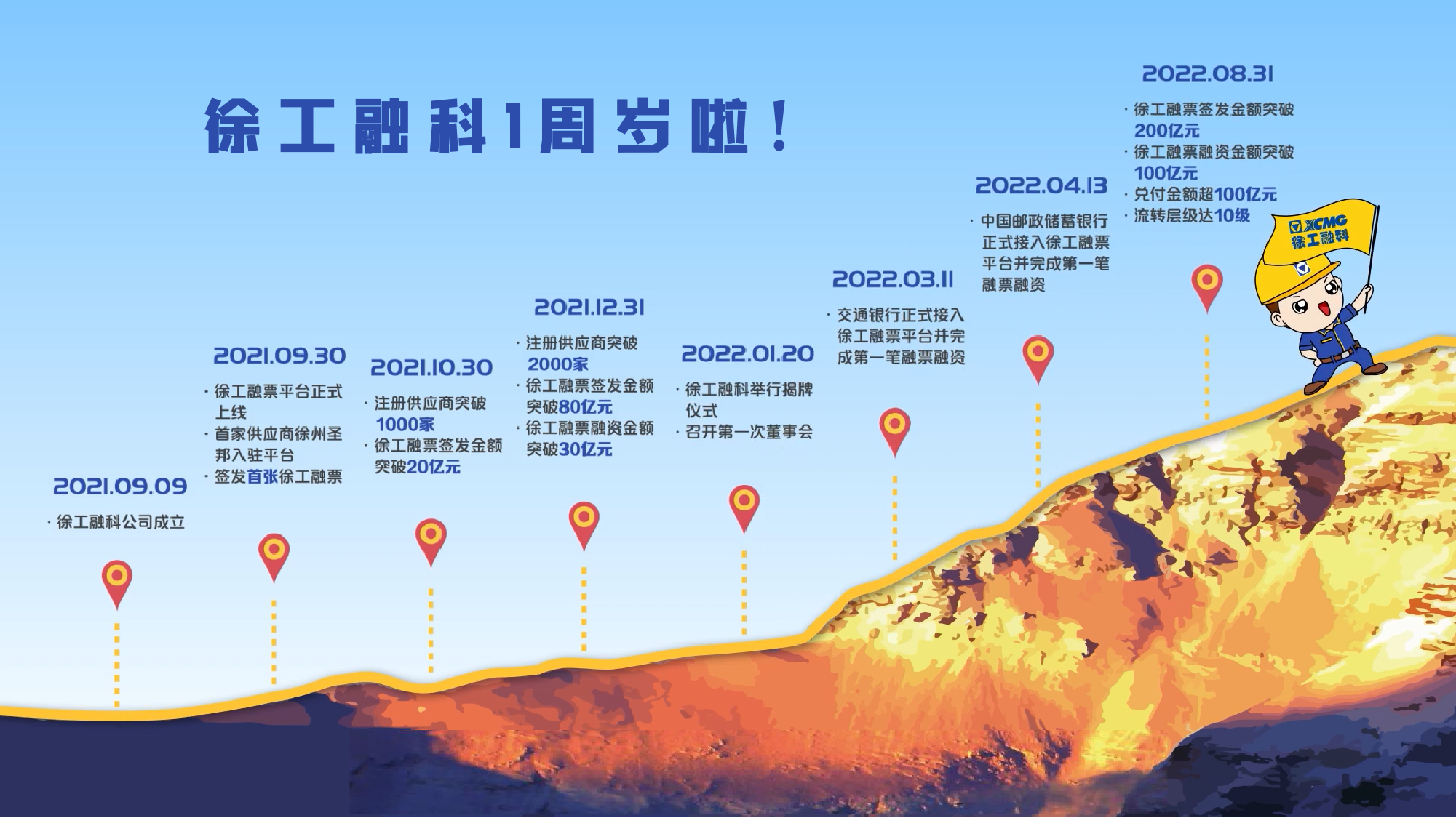 时光飞逝,光阴荏苒,徐工融票平台即将迎来上线一周年,在过去的一年里,面对经济形势下行和疫情反复双重压力,徐工融票平台始终与供应商朋友们携手共进。
