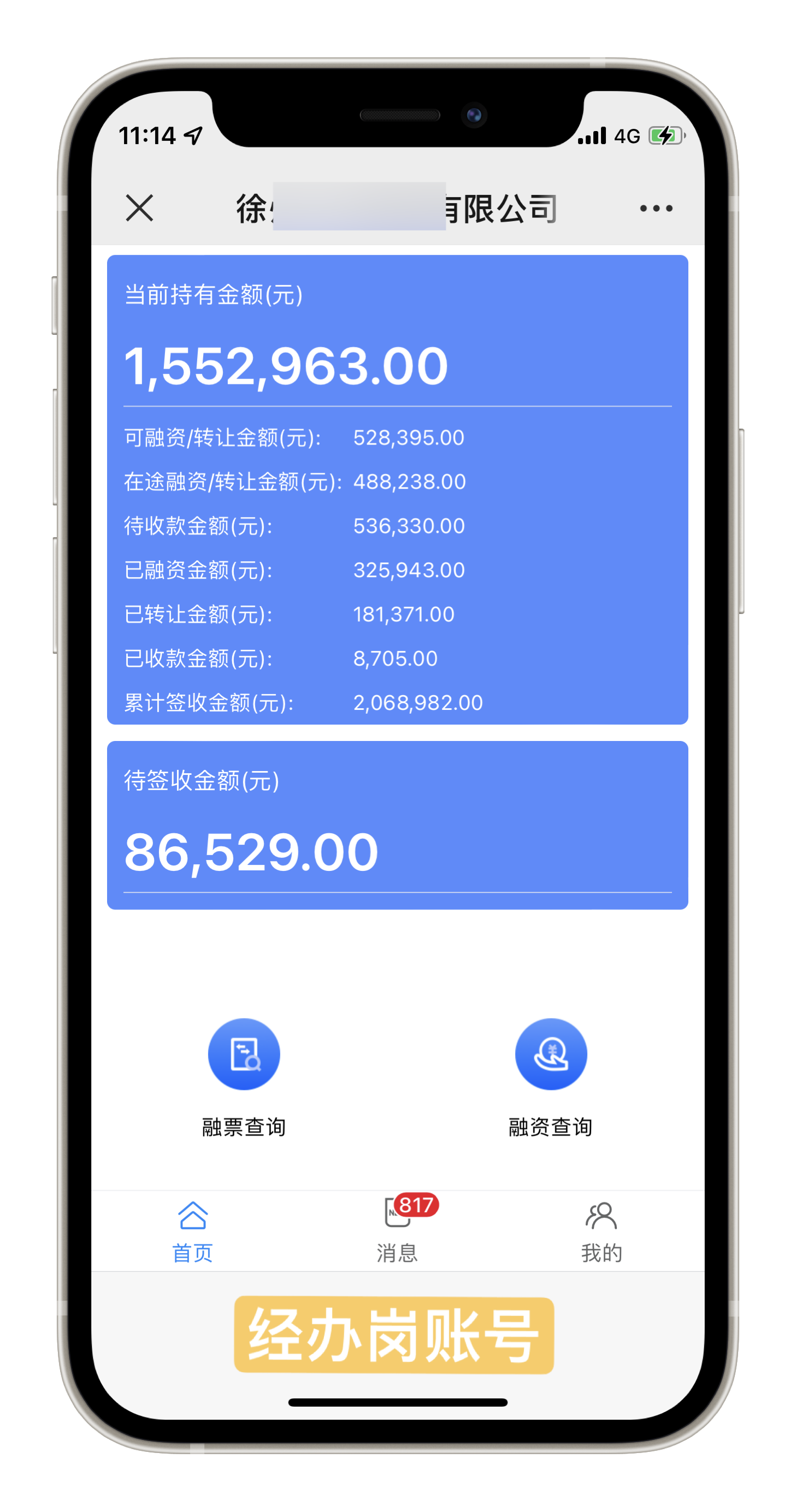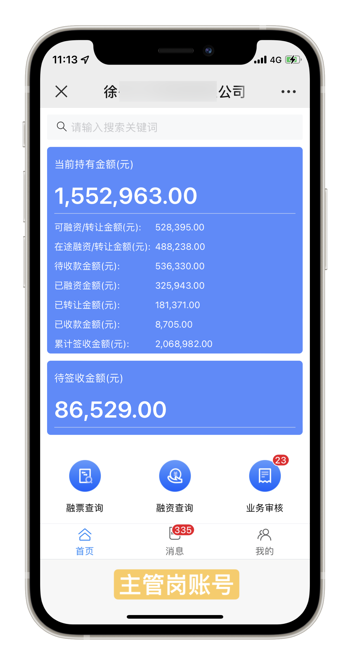 徐工融票平台公众号一期建设功能上线。公众号可实现融票业务查询功能及主管岗审核功能